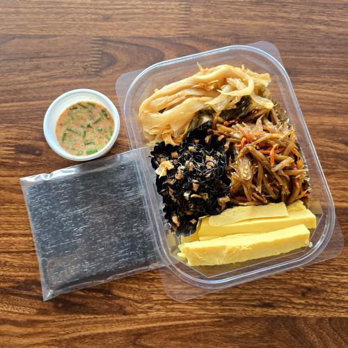 톳에 밥을비벼싸세요 ,명란소스 흙우엉 흙당근조림 , 톳유부조림 , 이쿠모리의달걀, 묵은지무침, 김