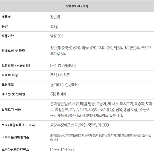 율마마정성맛찬 홈페이지